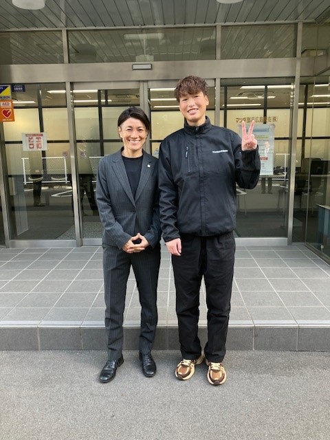 ディアヴォロッソ所属の当社社員の栂さんと記念撮影!